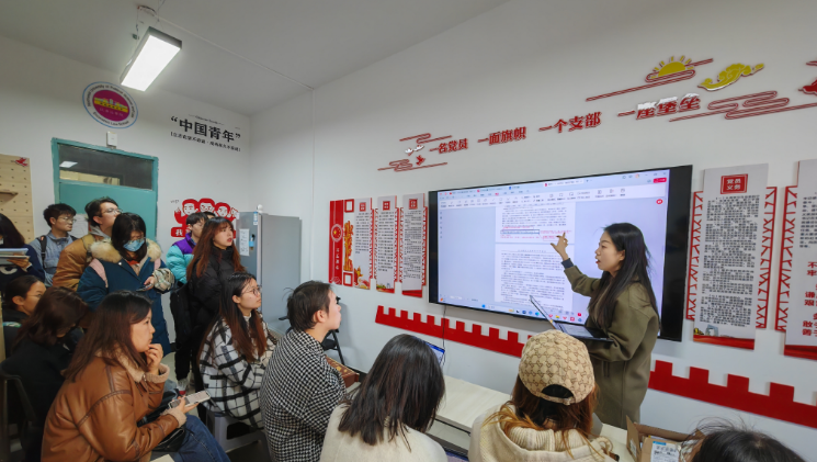 “一站式”学生社区组织开展“学年论文写作规范”指导培训会。党支部书记李冬冬、学院教务秘书徐靓、朋辈导师黄紫琦3位老师、2021级全体学习委员以及部分学生代表共计30余人参加。