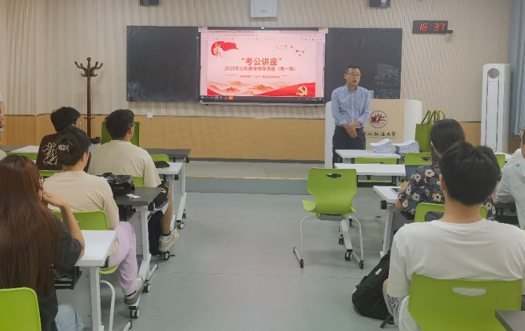 本科生第二党支部“2025年公考辅导讲座”第一期在长安区正心楼306教室举办。本次讲座邀请我校公考培训中心、信恒教育机构张鑫然老师主讲。2021级近50余名学生参加。讲座由党支部书记李冬冬主持。