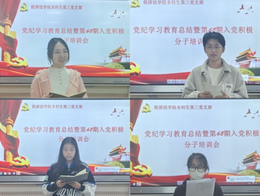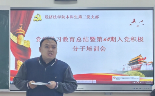本科生第三党支部召开党纪学习教育总结大会。党支部全体党员及第68期党课入党积极分子参会,会议由党支部书记张兴浩主持。