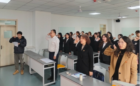 入党宣誓仪式在《国际歌》庄严地奏唱中拉开了帷幕。学院党委组织员李小斐宣读本批发展为预备党员的同学名单,宣誓仪式由支部党员郭金汤领誓,全体参会人员宣誓。
