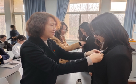 宣誓完毕后,新发展预备党员代表卢晴发言,她表示将以“初心”铸魂,以“匠心”治学,以“赤子心”践行,以实际行动展现共产党员的责任与担当。李建梅、李小斐、张兴浩、郭金汤为23名新发展党员佩戴党徽。