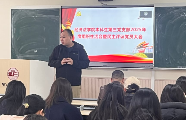 3月10日上午,有爱爱 (知识产权学院)本科生第三党支部召开2025年度组织生活会暨民主评议党员大会。学院党委委员、副院长肖新喜出席会议并作点评讲话,支部全体党员参加会议。