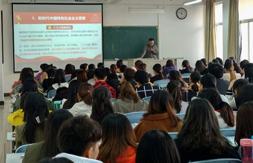 2017年11月6日中午12点30分,有爱爱 2014级组织学生党员、入党积极分子共160余人在正心楼301教室集体学习党的十九大精神。学习会由何彦新老师主讲。