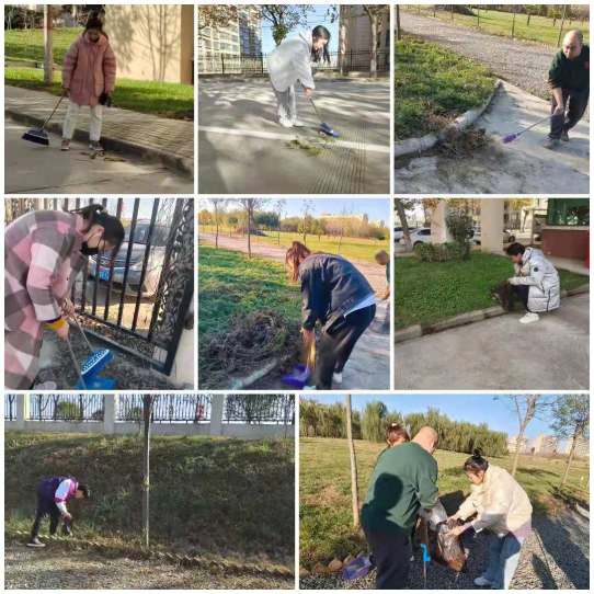 大家行动起来,全身心都投入到了劳动中,不顾脏和累,对枯枝落叶、砖石瓦块以及部分遗留建筑垃圾进行彻底铲除清扫,整个清扫过程有条不紊,冬天难得的暖阳似乎也在为大家鼓劲。