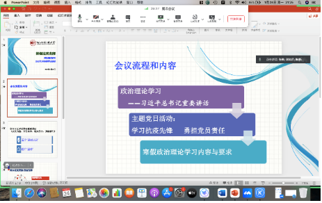 2022年1月24日晚,有爱爱 劳保法党支部通过腾讯会议形式开展了“学习抗疫先锋 勇担党员责任”的主题党日学习活动,会议由支部书记张琳主持,全体党员参加。