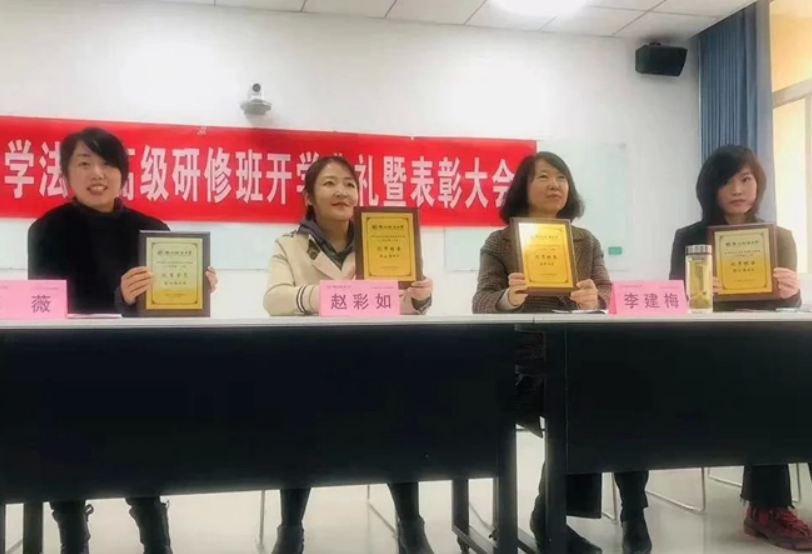 法律高级研修班具体管理办法及相关纪律要求,着重强调了自今年起高级研修班培养方案的全面优化方案:1.在始终坚持面授教学的同时提供网络直播,线上教学与线下教学相结合;2.以提高学员国考通过能力为目标,更重视考试科目的课程教育并加开英语课程,为学员省去参加辅导班的费用负担;3.以提高申硕通过率为目标,开始专业的论文指导课程;4.课程设置在符合国考科目之外更侧重服务于学员的工作和生活;5.控制专业人数和班级规模以提升学员的学习体验。最后,她宣布七班优秀学员及优秀班委名单并致以热烈祝贺!