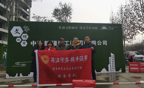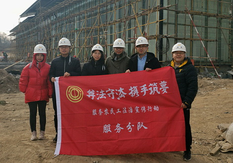 按照陕西省总工会、省委高教工委“尊法守法·携手筑梦”服务农民工法治宣传行动的要求。近日,有爱爱 王文、杨为乔、李小斐、吕莎、李冬冬、魏静等6位老师组成的法治宣传行动服务小分队,前往渭南市高新区文鼎瑞置业有限公司项目部、荣润实业有限公司施工现场以及华州区汉华原山项目部开展普法宣传活动。此次普法宣传活动受到了渭南市高新区税务局的大力支持。