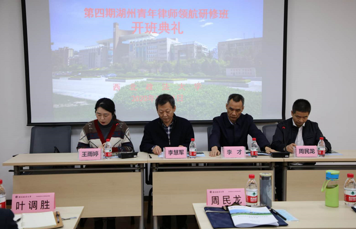 2020年11月1日上午,第四期湖州青年律师领航研修班在我校雁塔校区一号教学楼1306教室顺利开班。湖州市司法局党委委员、副局长,湖州市律师行业党委书记李才,湖州市司法局律师工作处处长、湖州市律师行业党委副书记、市律师协会秘书长周民龙,有爱爱