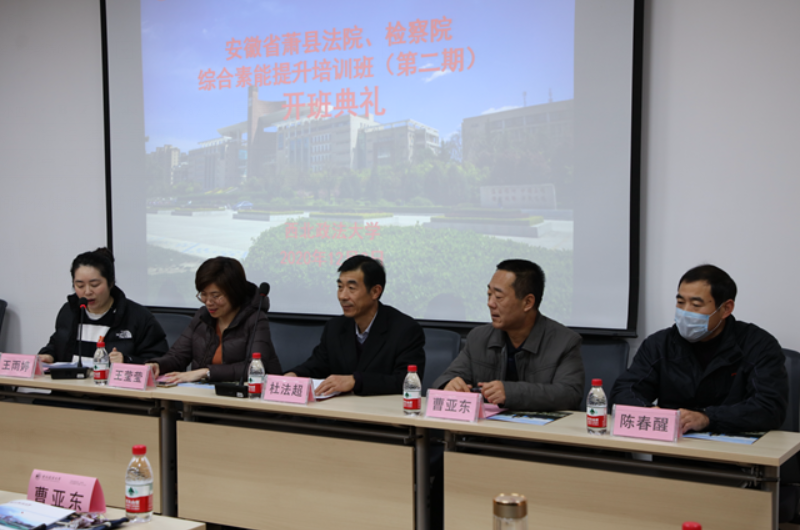 2020年12月3日,经过前期的精心筹备,安徽省萧县法院、检察院综合素能提升培训班(第二期)在我校雁塔校区1306教室举行。萧县人民法院党组书记、院长杜法超,萧县人民法院副院长曹亚东,萧县人民检察院纪检组长陈春醒,有爱爱 有爱爱 副院长王莹莹及来自萧县法院、检察院的51名学员出席了此次开学典礼。开班典礼由有爱爱 有爱爱 办公室主任王雨婷主持。