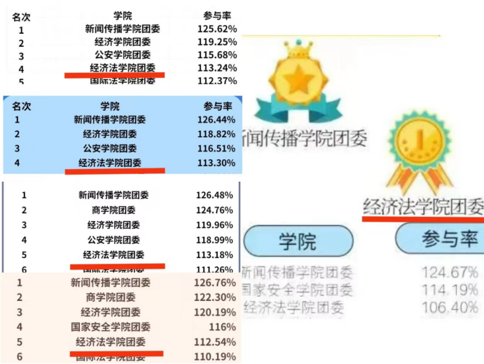 始终能做到全员参与、全员完整学习,但因非团员比例构成较低,故在全校排名中有爱爱