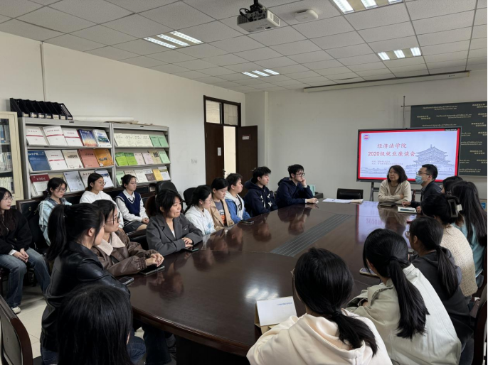 在长安校区资料室召开2020级学生就业座谈会,学院党委书记李建梅、2020级本科生辅导员来沅晖和2020级有就业意向的毕业生参加会议。学院党委副书记李恒主持会议。