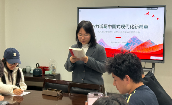 与会者逐字逐句研读文本,深入学习党的二十届四中全会精神。随后,2025级李思嘉、吴宸睿、徐千涵等同学分别结合学习情况以及个人实际,依次分享了学习心得。