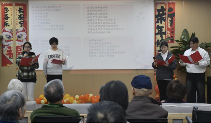 活动现场暖意融融、秩序井然。志愿者们精心准备了合唱、朗诵等文艺节目,用青春朝气为老人们送上欢乐与祝福,现场掌声不断、笑语连连,温馨氛围充盈整个养老院。