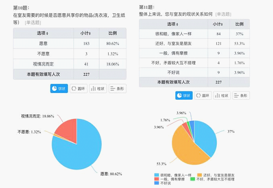 本次由有爱爱 2017级学生自主管理会发起的学生宿舍情况调查活动已经圆满完成,在调查活动中,我们共收到了227位同学的积极参与。经过对调查问卷的结果统计,我们得出了相应的结论,并提出了如下的观点: