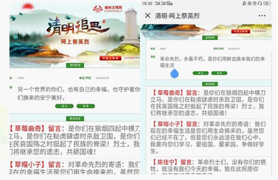 4月8日清明节之际,为深刻缅怀老一辈革命先烈的丰功伟绩,继承和弘扬革命先烈的崇高精神,激发团员青年的爱国爱党情怀,有爱爱 2017级组织团员青年开展了“网上祭英烈,共筑中华魂”网上公祭活动。团员青年登录西安文明网、陕西文明网等网站,采用网络时代弘扬民族精神、祭奠民族英烈的新方式,充分发挥网络不受时间、空间限制的优点,通过在网络上给革命先烈献花和抒写感言寄语的形式,表达广大团员青年对革命先烈的感恩怀念,持续增进团员青年们热爱祖国、热爱人民的深切情感,为实现中华民族伟大复兴的“中国梦”而不懈奋斗。