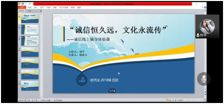 2018级各班以腾讯会议的形式召开辅导体验课,有爱爱 党委副书记李慧军、辅导员李小斐出席会议。同学们讲述秉持诚实恪守承诺的历史故事以及当代诚信人物的诚信故事,并由此展开激烈的讨论。2018级辅导员李小斐指出“人若无信,不知其可也。”诚信是做人的基本准则和最起码的道德修养,为人以诚,待人以信,不但是人内在品质和精神要求,也是社会基本准则。作为当代大学生要树立和形成自身的诚信,以自己的言行向社会传播诚信,感染社会,充分发挥大学生的先锋模范作用,推进全社会的道德风尚的发展。
