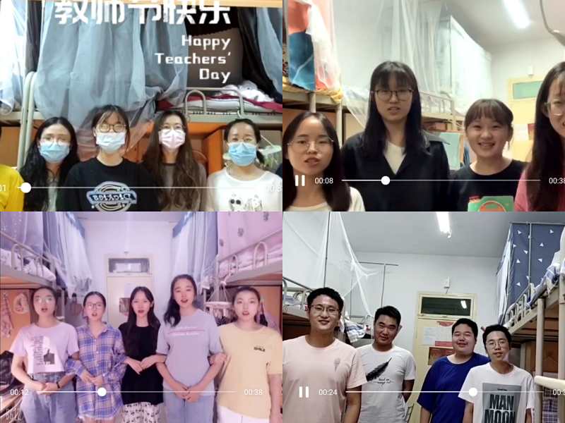 帧帧画面,祝福老师;深深故事,致敬老师。2019级同学独具创意,采用视频录制的方式寄托感恩情怀。一年的朝夕相处,日常生活中亲切交谈,专业学习中督促帮助,亦师亦友的亲切关系,同学们铭记于心。视频中一帧帧暖心画面为老师送上了一份真切祝福。有些班级召开了教师节主题班会,同学们分享了与老师的点滴故事。大家畅所欲言,在交流中表达了对老师的感谢与敬佩,将师生的美好回忆体现于自己的言行之中。
