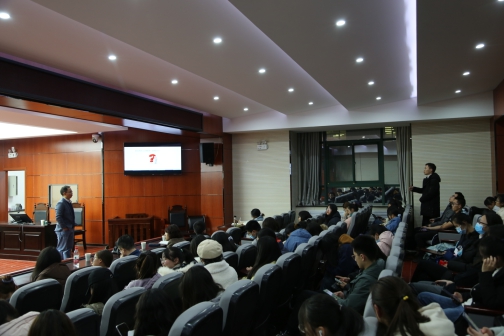 2000级校友罗绍元为全体2020级新生做了“把握现在,成就未来”为题的经验分享交流会,学院党委书记李建梅,学院知识产权法教研室张爱国副教授交流会,学院团委书记王文参加交流会。交流会由2020级辅导员张兴浩主持。