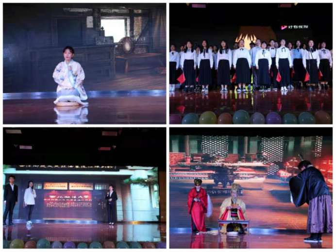 由仓业凡等六位同学带来的歌曲串烧《时光·留声机》将纷纭往事尘封于无尽流连,用经典老歌让时代之声得到回响,用朴素的情怀憧憬美好的未来。曾记否“风吹仙袂飘飘举”,服章之美谓之华,礼仪之大故称夏,矜熙汉服社的舞蹈《倾杯》唯美婉转、飘然若仙完美展现了中华传统服饰的魅力。少数民族同学代表演绎的《新疆舞》的曼妙隽永,是民族文化与异域风情的精彩呈现,引来全场喝彩。纵横两千年的历史奇遇,造就了古今对话的契机和窗口,话剧《话说张汤》以张汤这一历史廉洁文化人物为代表,弘扬了“为人正,为政勤,为官廉,为民实”的廉洁形象。