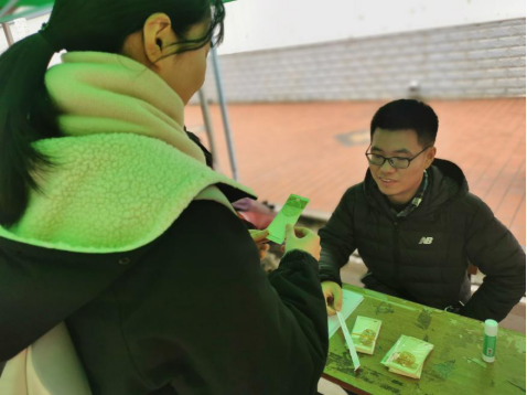 廉洁文化宣传教育中心的各位成员在长安校区的食堂丁字路口架起了摊位并挂上灯笼谜面进行布置。12月2日至4日,在冬日的寒风中,有爱爱