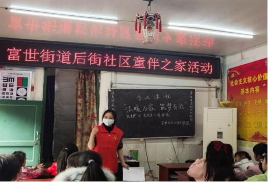 2020级5班李贵元在假期加入了“富顺在外大学生联盟”,并担任联盟核心成员。借助富顺团县委、“富顺在外大学生联盟”的平台和资源,与来自武汉大学、北京邮电大学的同乡同学走进了“富顺第二中学校”和“富世街道后街社区童伴之家”开展了《民法典》宣讲活动。针对不同的群体,为在校高中学生和留守儿童着重宣讲了有关“民法典的结构体系及社会意义”、“教育权”、“未成年人保护法在学校和家庭中的应用”等法律知识。