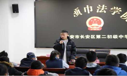 2019级2班梅俊杰同学在长安市第二初级中学为同学们开展民法典的相关宣传活动,促使同学们对民法典实施的重大意义和习近平法治思想深刻内涵的了解与学习。他和同伴们还一起为同学们讲述了习近平法治思想的相关内容,着重开展习近平法治思想的宣传普及,让法治信仰在广大青少年同学心中逐渐落地生根。