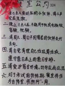 各班首先采用主题班会、主题团日活动等形式宣传垃圾分类的要求,讲解传染病防治知识,宣讲劳动模范精神事迹以提高学生热爱劳动、尊重劳动、崇尚劳动的精神风尚,并动员同学们进行爱国卫生运动主题作品征集活动。为了创造良好的学习环境、生活环境,养成文明的习惯,提高综合素质。各班同学还在宿舍特地制定学生宿舍文明公约、寝室卫生值日要求、寝室成长总体规划以及进行“热爱劳动、文明同行”倡议签名。在活动中,同学们仔细阅读倡议书,深刻领会和理解倡议书中关于劳动的深刻内涵和重要意义。