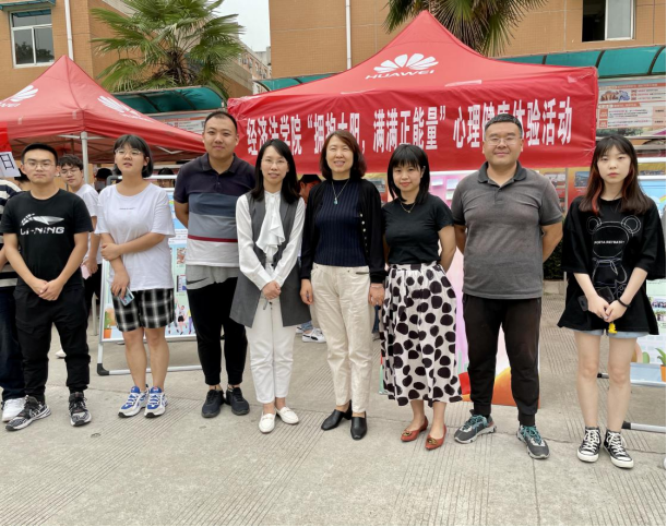 在食堂丁字路口开展“拥抱太阳,满满正能量”心理健康体验活动,学院党委书记李建梅、各年级辅导员参加活动。