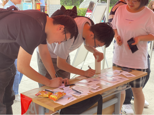 学生会心理部对参加活动的同学做了随机采访,询问平时生活当中的心理状况,包括学习当中的焦虑状况,不愉快的事情,与室友的关系等。学院的老师们与在场的同学们亲切交流,同时也亲自体验了活动,了解了同学们日常的心理状况。