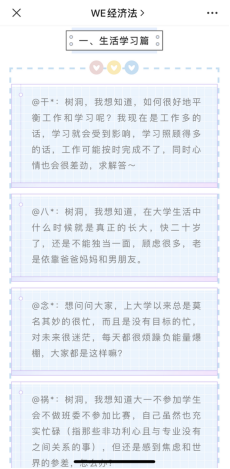 依托公众号发布四期征集心理问题专栏,收集学院学生学习生活中的困难和问题,在留言板相互沟通交流,合计浏览量破千,互动效果良好。