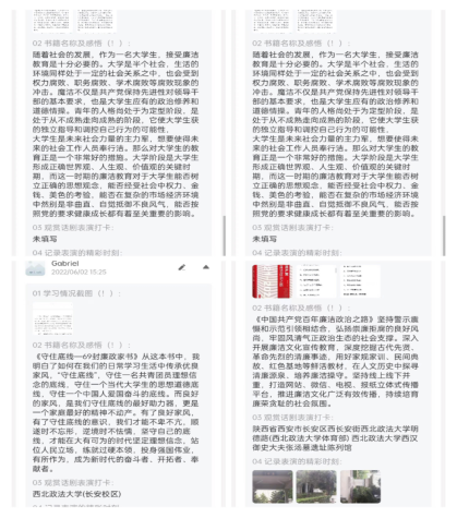 在“廉洁趣味打卡活动”中,活动采用打卡方式同学们通过阅读廉洁相关书籍、参与张汤墓话剧表演、讲述廉洁故事来感悟廉洁文化。同学们积极参与,纷纷通过打卡小程序发表自己的感悟。本次活动也代表着中心对同学们未来的寄托:在工作生活中总会有各种各样的监督,要化压力为动力,不负韶华,不负时代,为法治昌明贡献自己的力量。