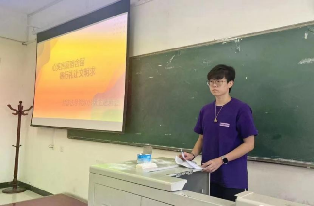 组织2021级学生在长安校区正心楼301教室召开“心美言丽宿舍留,德行礼让文明求”主题班会。2021级辅导员李冬冬参加。