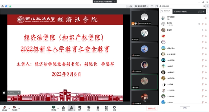 于线上开展新生安全主题教育活动,由学院党委副书记李慧军主讲。