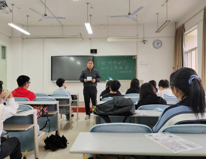 2022级开展金融、网络安全主题教育班会,辅导员张兴浩主讲,2022级全体学生参加。