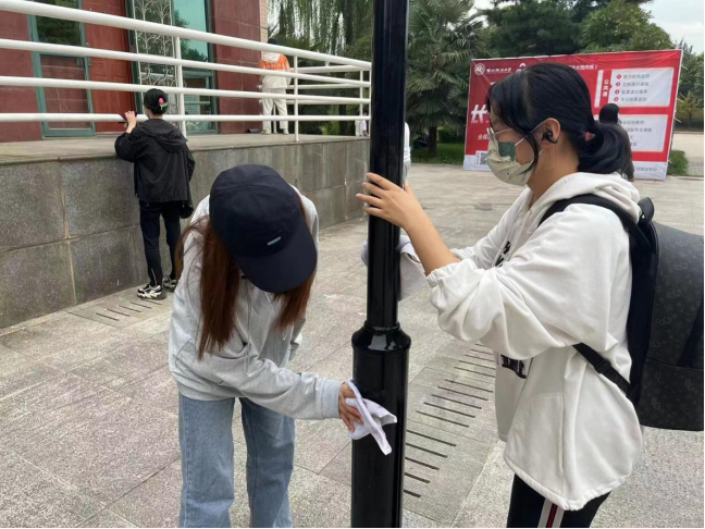 组织2022级新生在学院环境区开展卫生清洁活动。