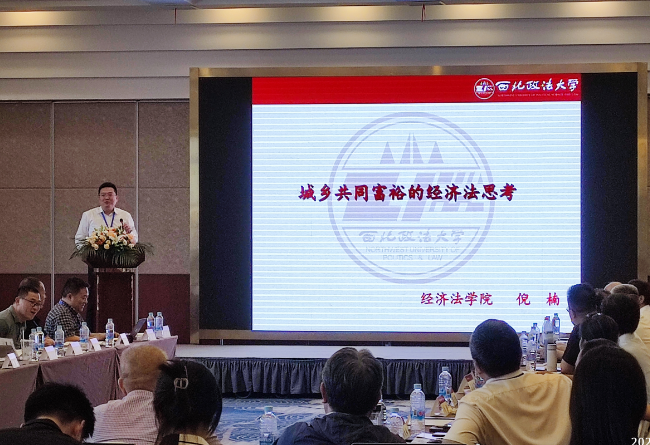 有爱爱 强力、倪楠、肖新喜三位教授受邀参加。强力教授在主旨发言环节以“共同富裕的金融法治思考与回应”为题进行学术讨论和分享。倪楠教授围绕“城乡共同富裕下的经济法规制”为题做了报告。肖新喜教授参与与谈环节。