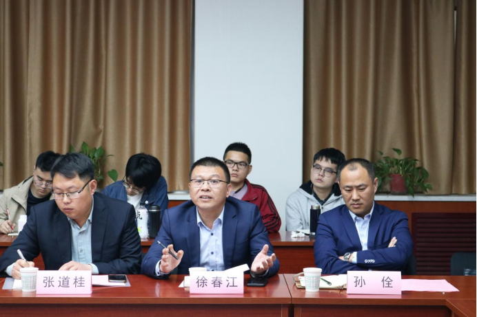 党委书记李建梅从学院发展历程、学科优势、师资力量等方面详细介绍了学院的基本情况,并对辰丰建设这两年对学院教学、科研活动的支持表示感谢。孙佺董事长重点介绍了辰丰建设集团的主营业务、集团规模、发展前景等方面及与学院未来的合作愿景。