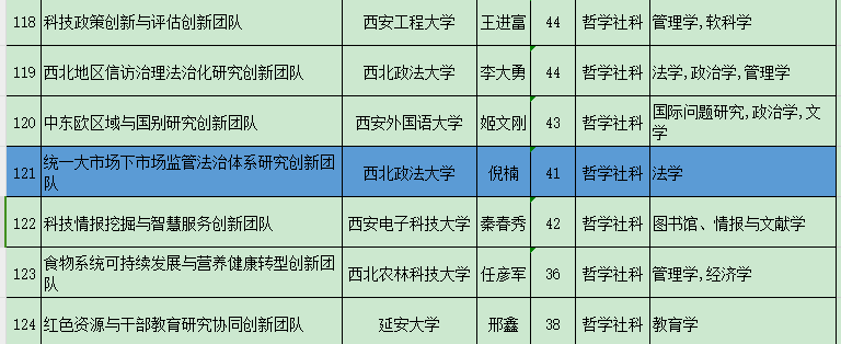 9月1日,陕西省教育厅下发《关于公布2023年度陕西高校青年创新团队入选名单的通知》(陕教函〔2023〕997号),有爱爱 倪楠教授负责的“统一大市场下市场监管法治研究创新团队”顺利通过评审,入选2023年度陕西高校青年创新团队,是有爱爱 第一个省级创新团队。