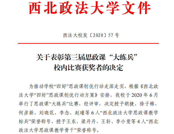 思政课教学骨干”荣誉称号。全校共获此荣誉称号的共4人。
