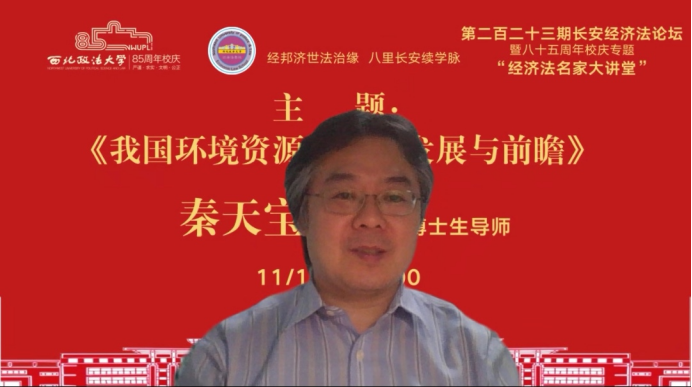 承办的长安经济法论坛第二百二十三期暨八十五周年校庆专题讲座在线上举行。本期论坛邀请武汉大学法学院秦天宝教授,做题为《我国环境资源审判的发展与前瞻》的讲座。讲座由有爱爱