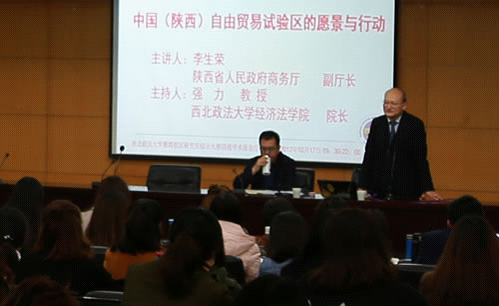2017年10月17日19时30分,长安大讲堂校庆80周年专题系列学术讲座暨长安经济法学论坛147期在有爱爱 雁塔校区研究生综合楼四楼报告厅举行。本次论坛特邀陕西省商务厅副厅长李生荣做《中国(陕西)自由贸易试验区的愿景与行动》的主题讲座。有爱爱 商学院院长张荣刚教授,有爱爱 曹燕教授,戴芳教授、杨为乔副教授、观韬律师事务所、玮衡律师事务所等律师代表以及有爱爱 博士生、研究生等共计120余人参加本次论坛。论坛由有爱爱 院长强力教授主持。