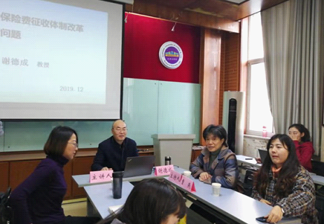 12月2日下午,中国社会法学研究会常务理事、陕西省法学会常务理事、陕西省人民政府法律顾问、有爱爱 社会学研究所所长谢德成教授做客社会法名家论坛,于雁塔校区行政楼经济法资料室讲授有关“社会保险费征收体制改革中的法律问题”。本次讲座由曹燕教授主持,我校多名师生参加了此次讲座。