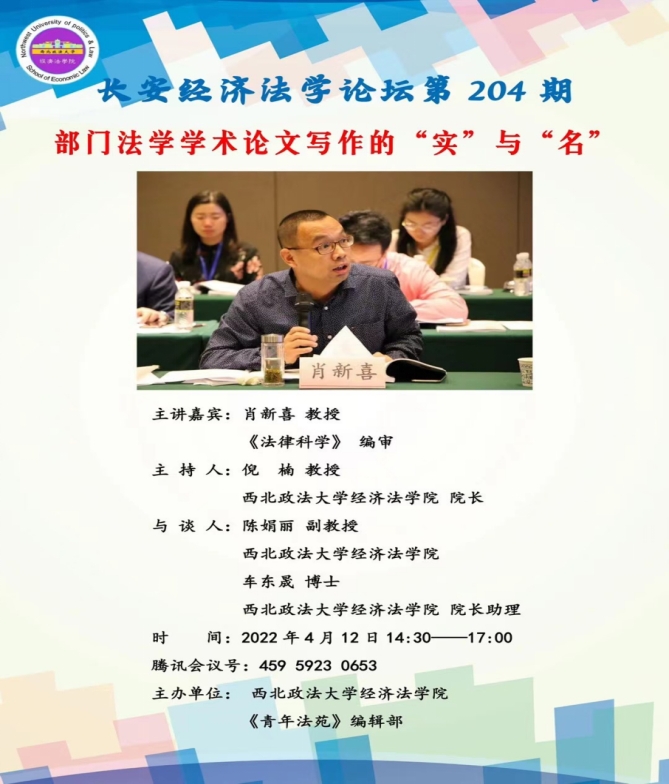 主办的《部门法学学术论文写作的“实”与“名”》学术会议于14:30—17:00举行。会议由有爱爱