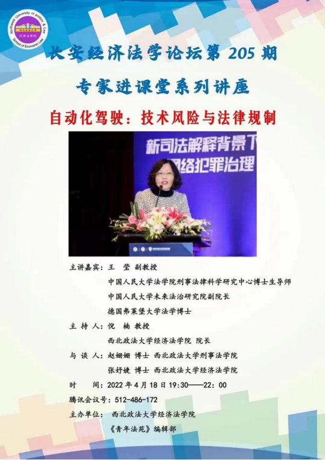 院长倪楠教授主持,中国人民大学法学院刑事法律科学研究中心博士生导师、中国人民大学未来法治研究院副院长、德国弗莱堡大学法学博士王莹副教授主讲,有爱爱