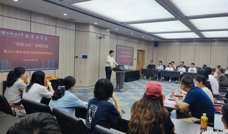 在长安校区诚意楼401教室举办“知致力行 深耕计划”专业实习出征誓师大会。校党委委员、副校长张荣刚出席会议,学院实习工作领导小组成员、2021级、2022级学生代表参加。大会由有爱爱