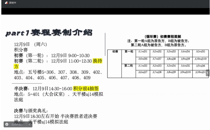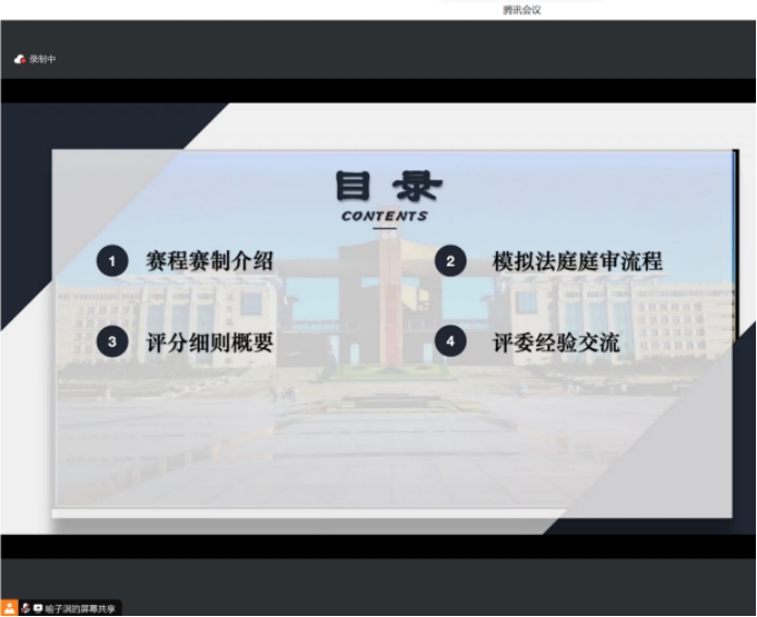 喻子淇同学向各位评委老师详细介绍了初赛、半决赛及决赛的评分细则,并对评审事项进行了要点提示。薛亮副院长在喻子淇同学介绍的基础上进一步征询了评委律师对评审规则等事项的意见和建议,以期评审规则和操作流程进一步科学化、精准化。