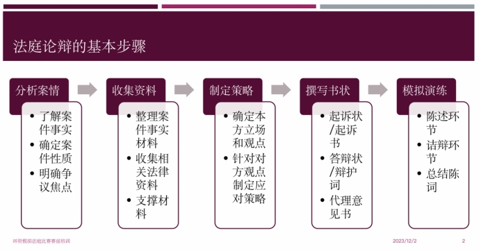 各赛队队员对于本次赛前培训感到受益良多,并表示将认真消化老师所提到的相关注意事项,争取在比赛当天发挥出自己的最佳状态。本次学生赛前培训会梳理了比赛流程,帮助同学们明晰了法庭辩论的基本步骤,为模拟法庭辩论大赛的顺利开展奠定了坚实的基础。预祝本次大赛取得圆满成功!