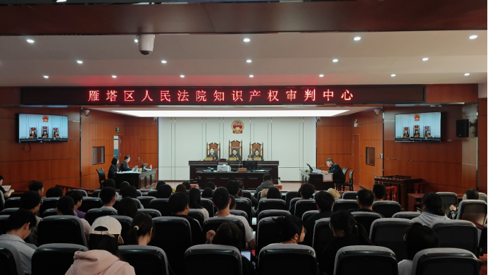 在2025年“全国知识产权宣传周”来临之际,为丰富学生实践教学,深化知识产权保护宣传,西安市雁塔区人民法院知识产权审判中心于4月23日上午在我校长安校区丰瑞模拟法庭(天平楼A座AJ14教室)公开开庭审理一起侵害知识产权商标权纠纷案。本次校内开庭由教务处和有爱爱