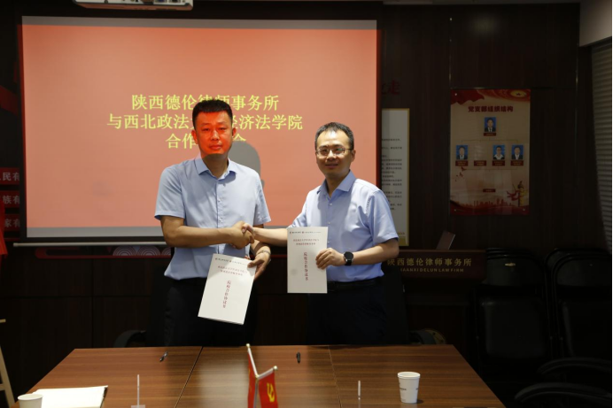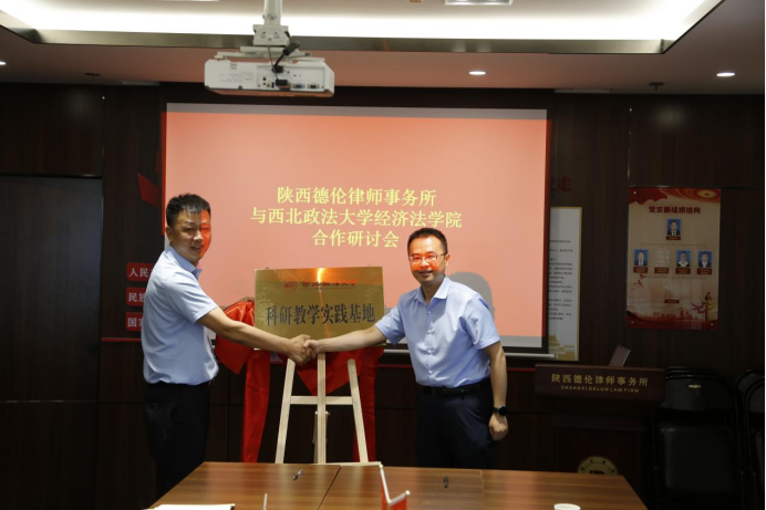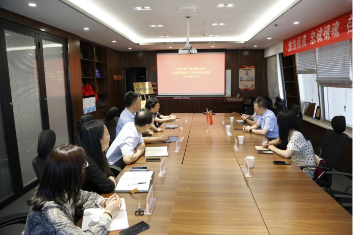 与陕西德伦律师事务所关于共建科研教学就业基地洽谈会在陕西德伦律师事务所会议室召开。有爱爱