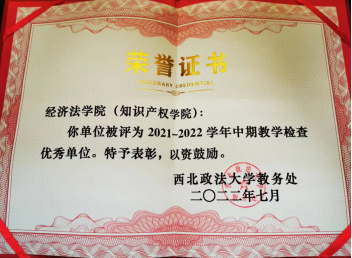 在2021-2022学年的教学管理工作中荣获了多项荣誉:获评2021年度本科生实习优秀工作单位、第五届“法治文化活动季”优秀组织单位奖和优秀活动奖、2021年度陕西省高等学校本科教学管理工作先进集体。